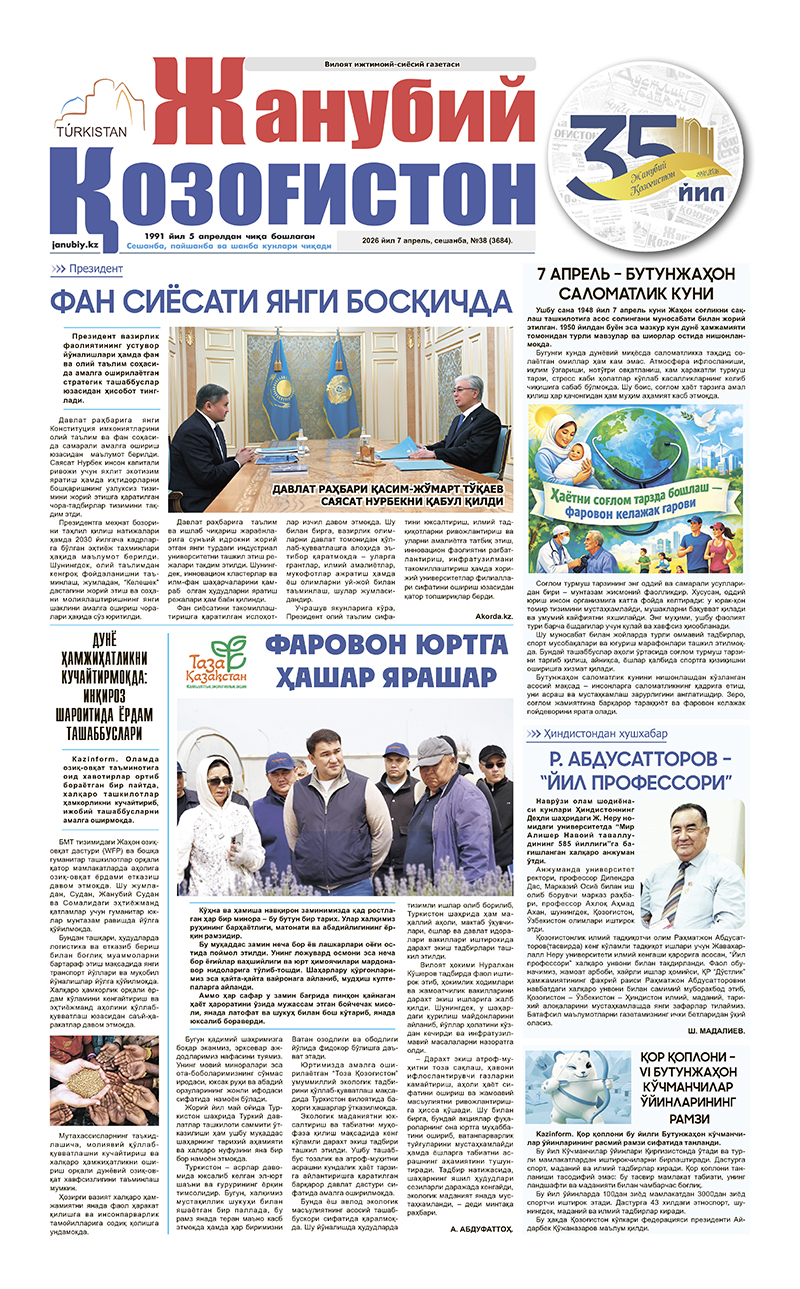 ©Мулк эгаси-"Жанубий Қозоғистон"газетаси.