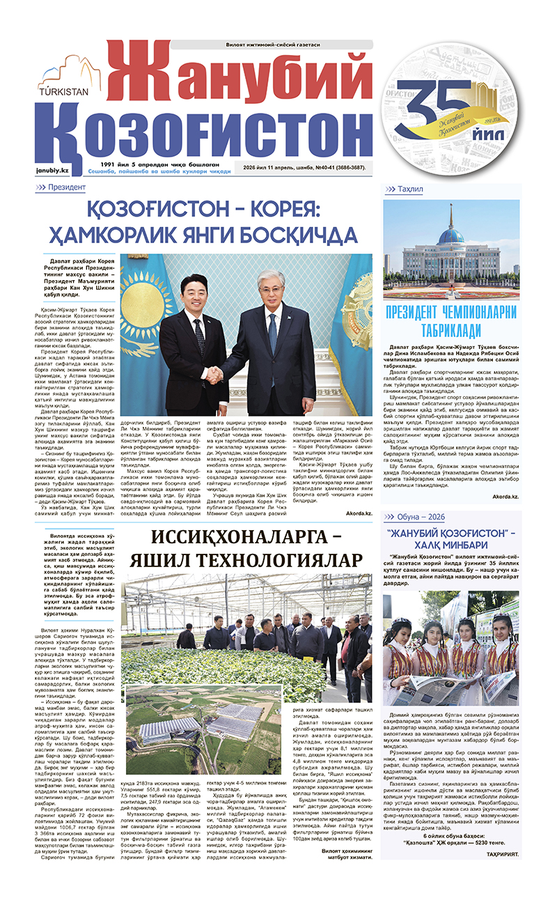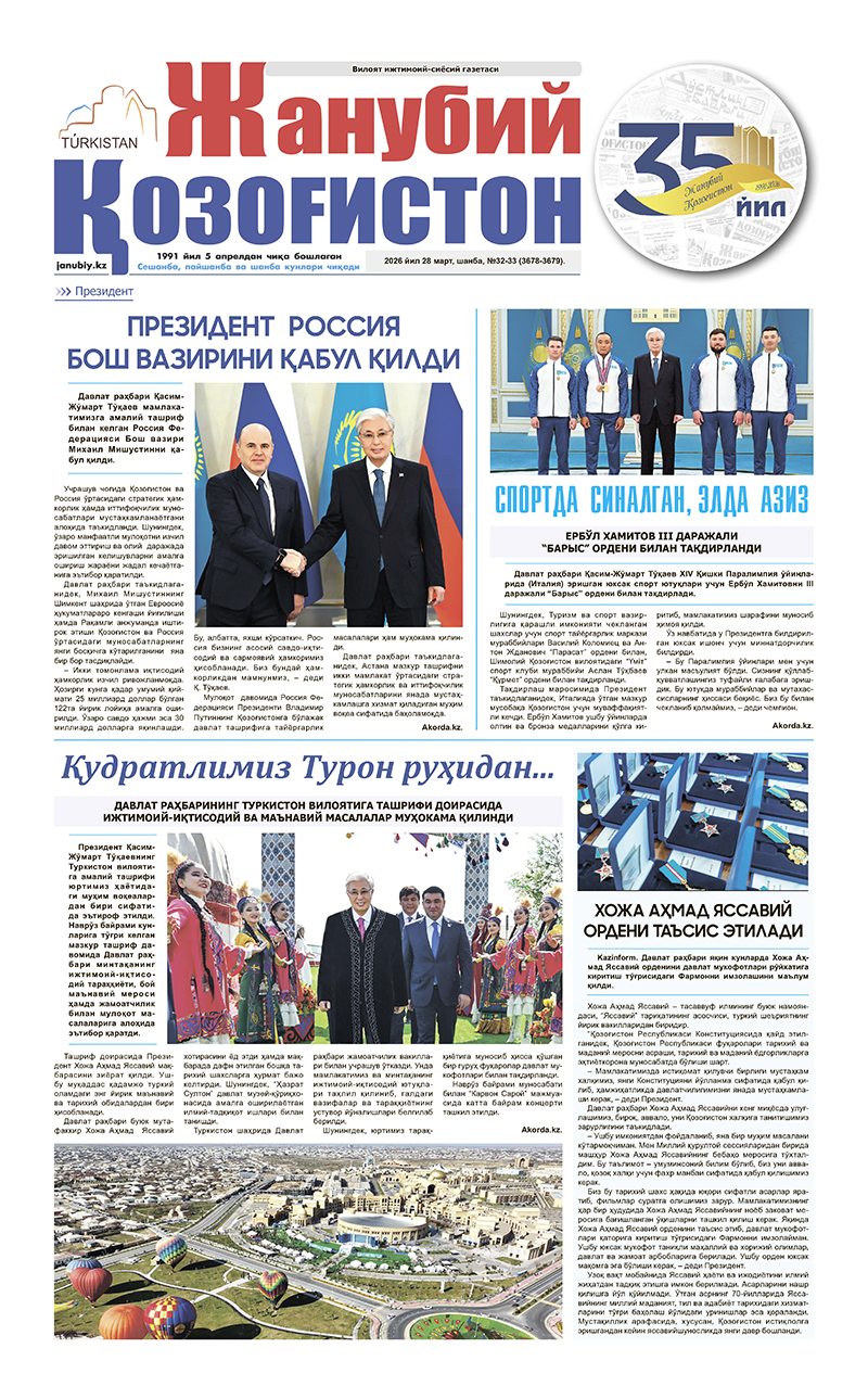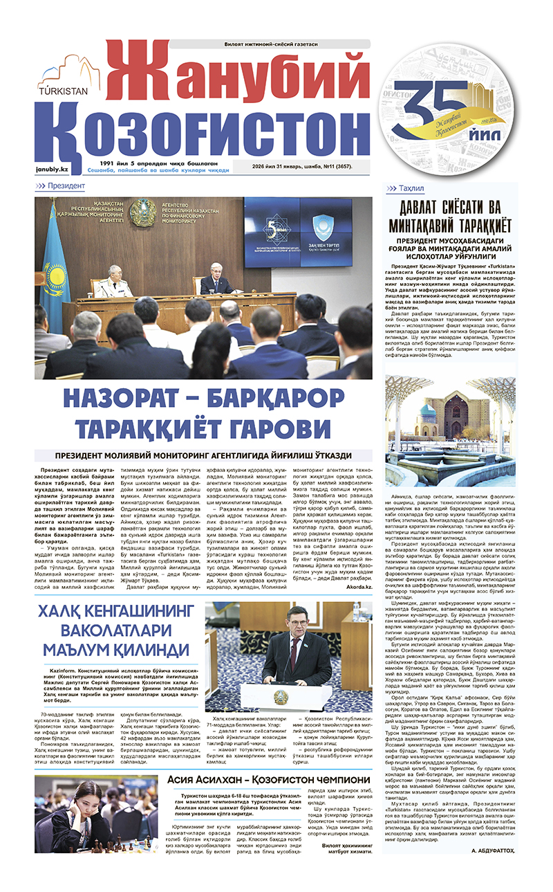 ©Мулк эгаси-"Жанубий Қозоғистон"газетаси.