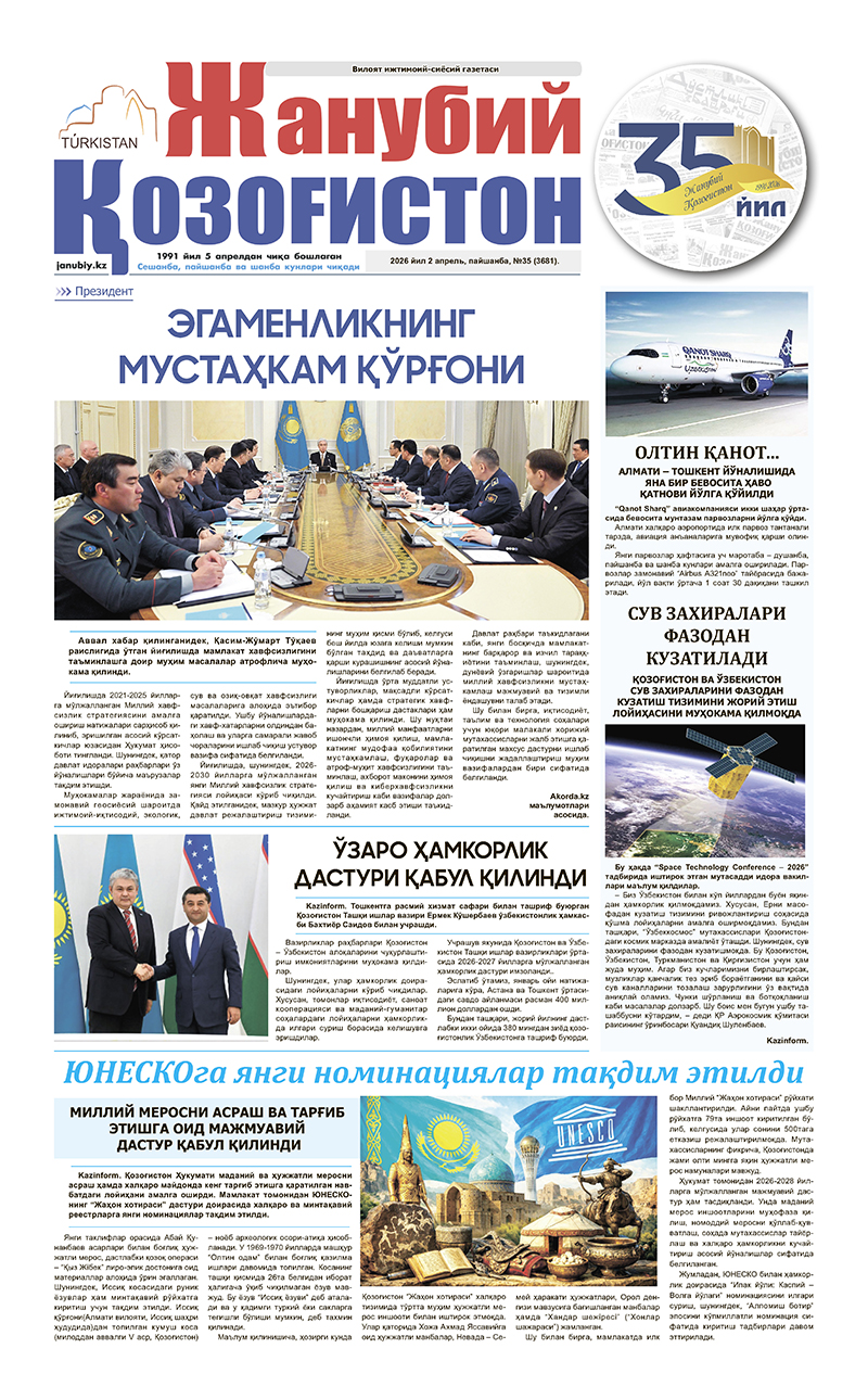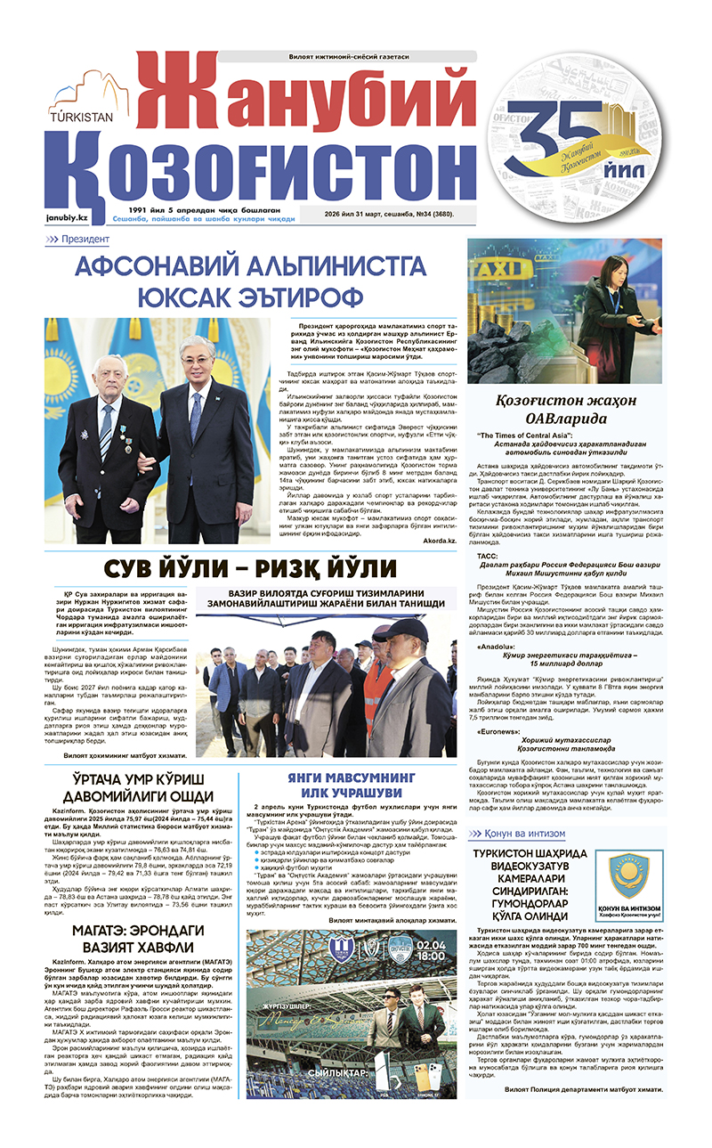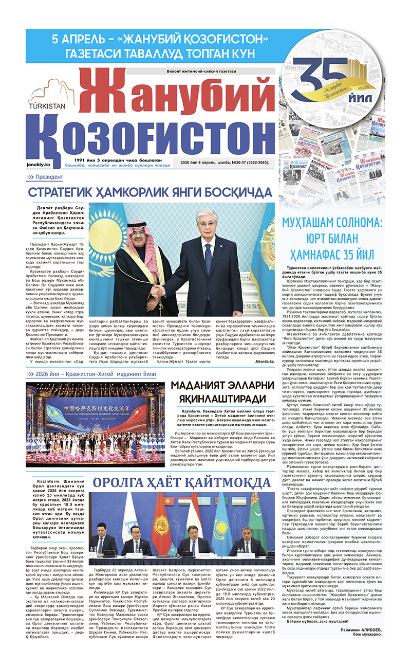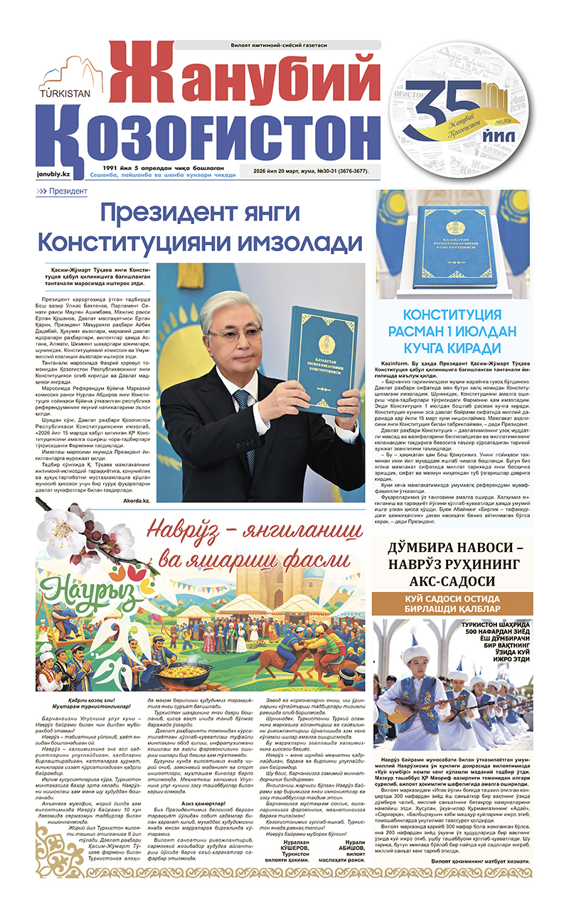 ©Мулк эгаси-"Жанубий Қозоғистон"газетаси.