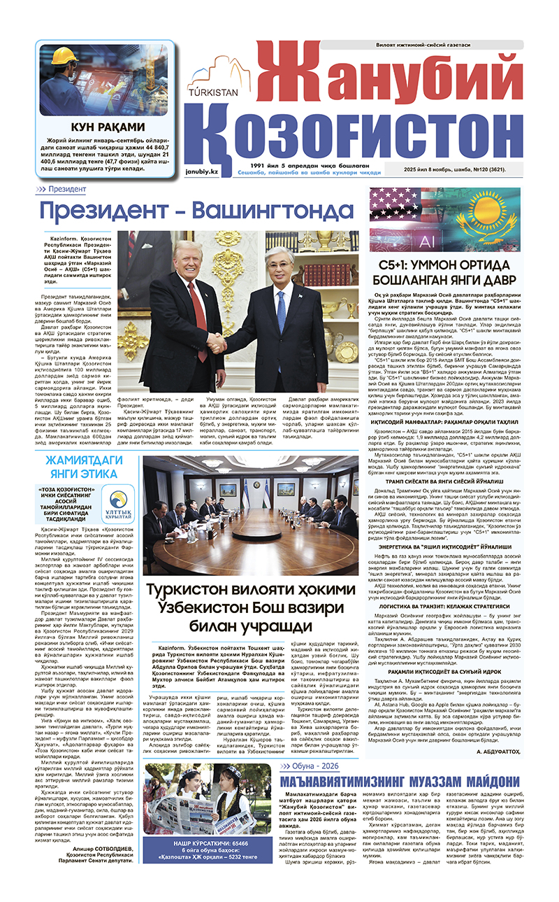 ©Мулк эгаси-"Жанубий Қозоғистон"газетаси.