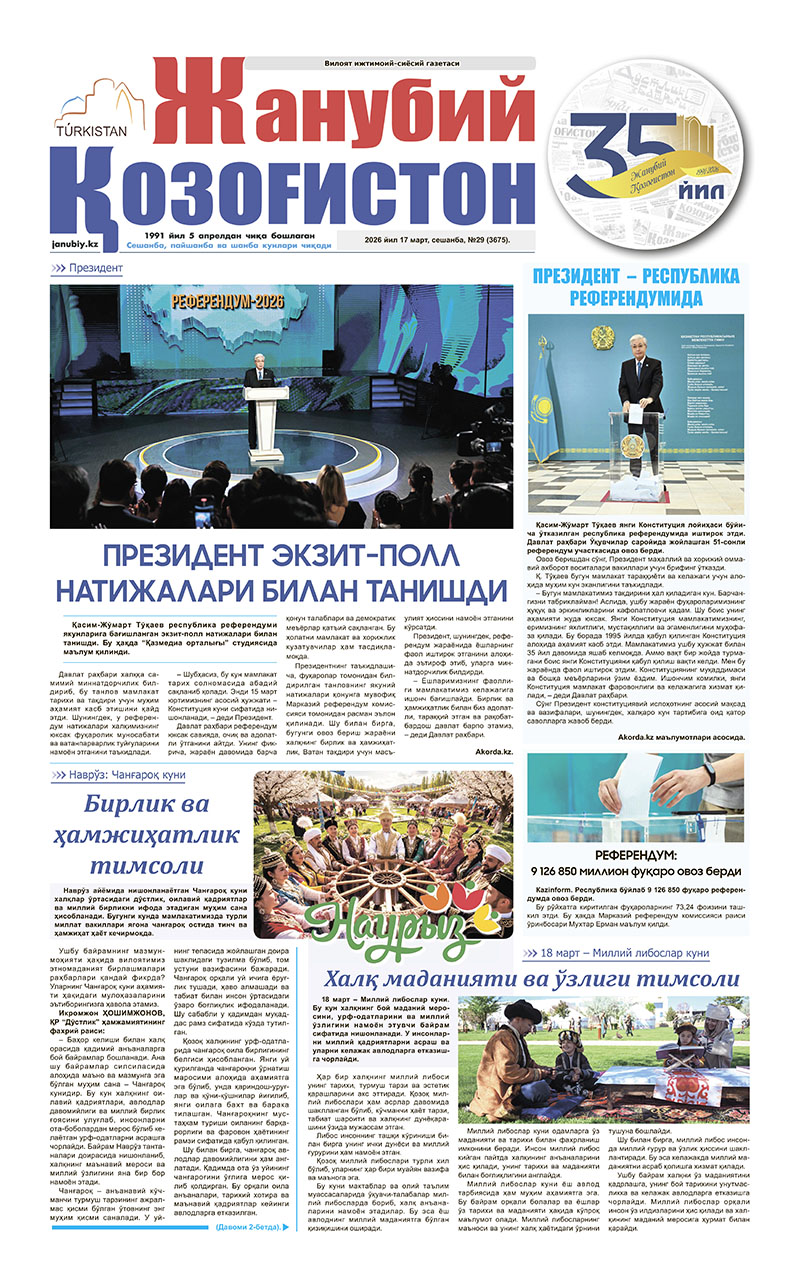 ©Мулк эгаси-"Жанубий Қозоғистон"газетаси.