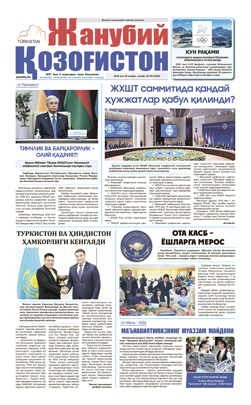 ©Мулк эгаси-"Жанубий Қозоғистон"газетаси.